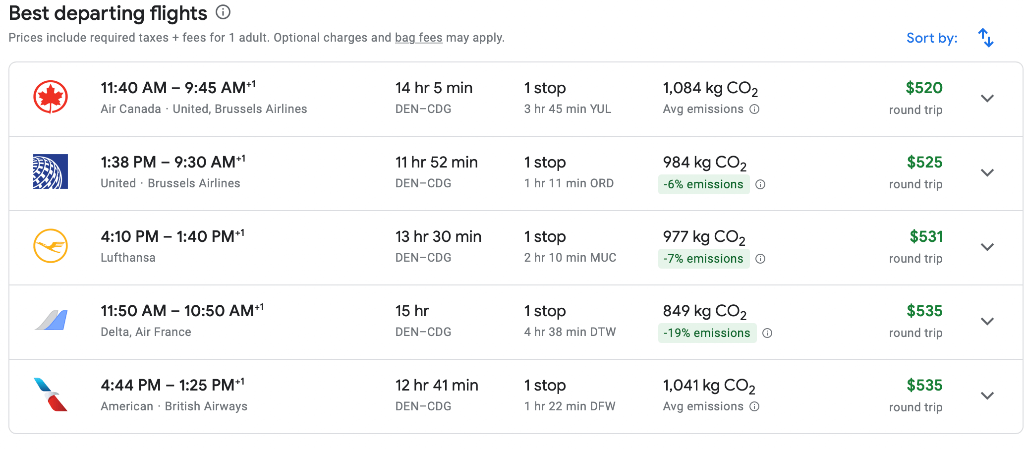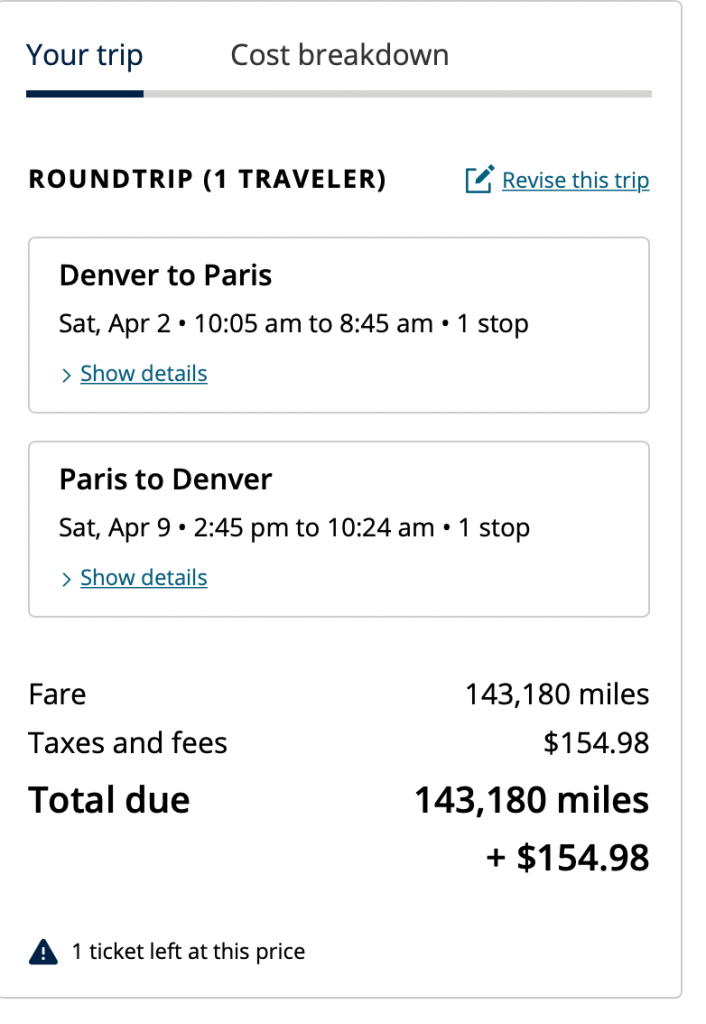 We will look at United as it is the easiest transfer partner from Denver-Paris using Ultimate Rewards. This is what I found: